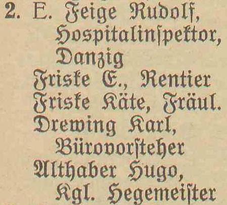 Rudolf Feige. Książka adresowa gminy Oliwa z 1910 roku. Zbiory Pomorskiej Biblioteki Cyfrowej.