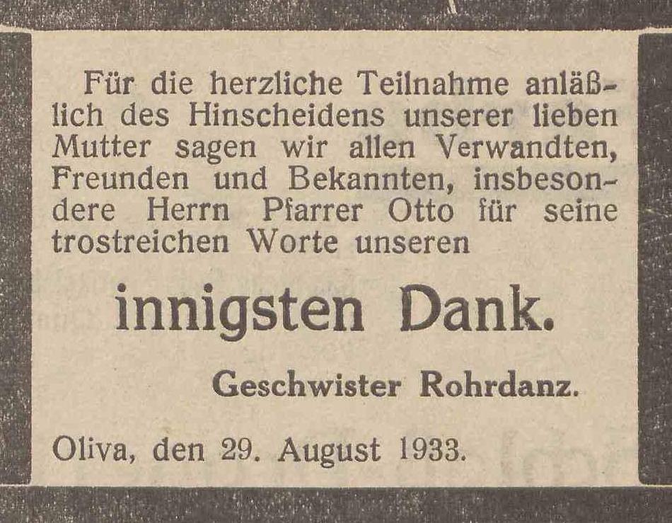 Rohrdanz, Geschwister. Danzig-Olivaer Zeintung nr 202 z 29. 08. 1933 r.