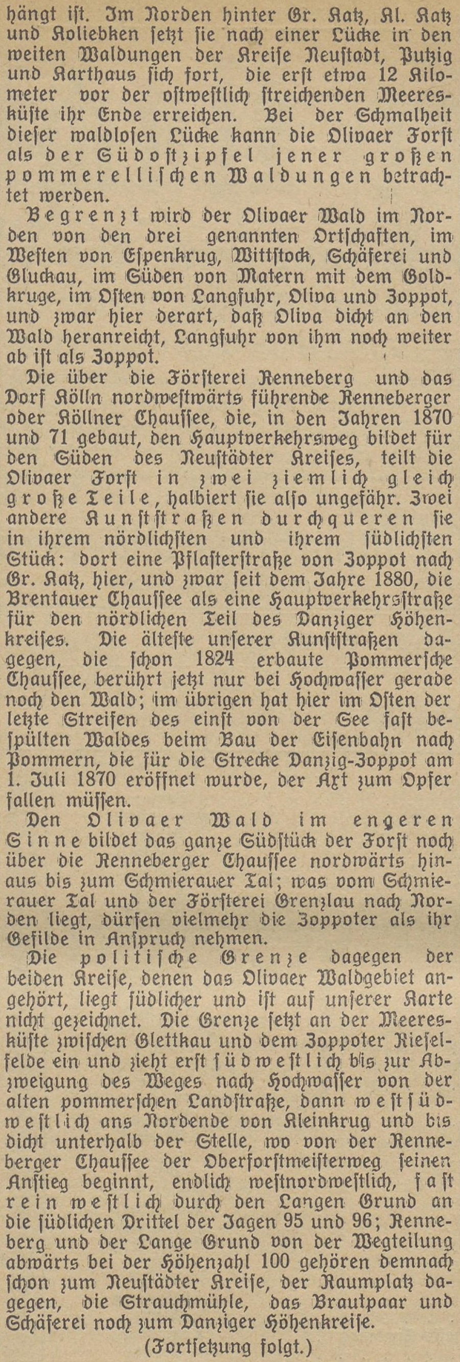 Umschau im Olivaer Walde nach der für Zoppot und Oliva.