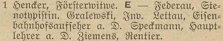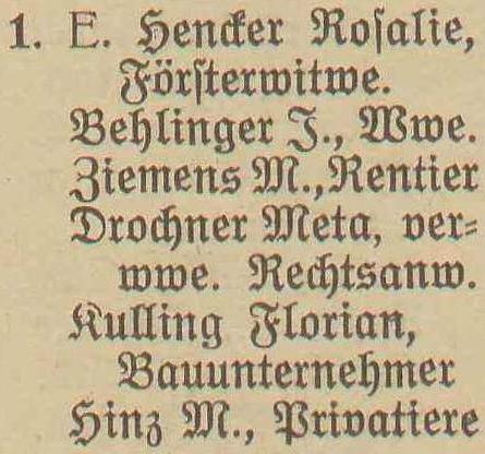 Rosalie Hencker. Książka adresowa gminy Oliwa z 1910 roku. Zbiory Pomorskiej Biblioteki Cyfrowej.