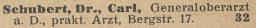Schubert, Karl, Dr. prakt. Arzt. Generaloberarzt a. D.