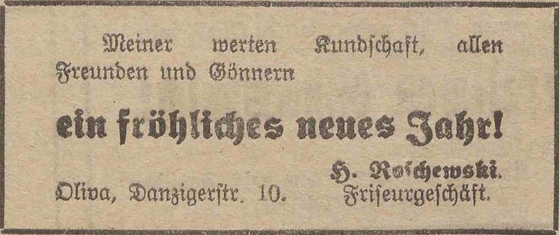 Hermann Roschewski, Friseurgeschäaft. Podziękowania noworoczne, Olivaer Zeitung nr 306 z 31. 12. 1928.