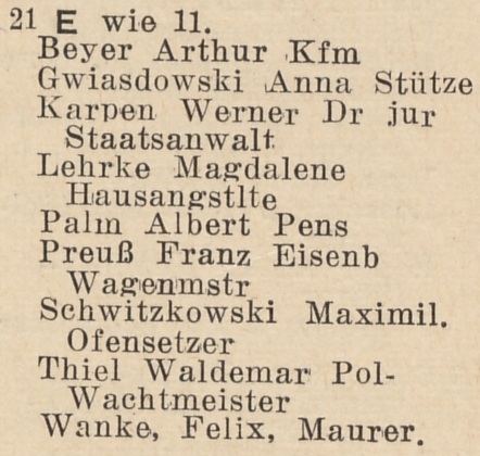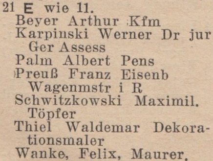 Książka adresowa z roku (Bergstraße 21):