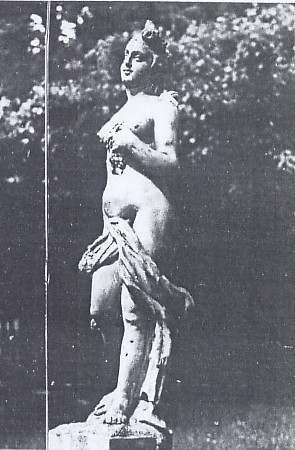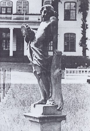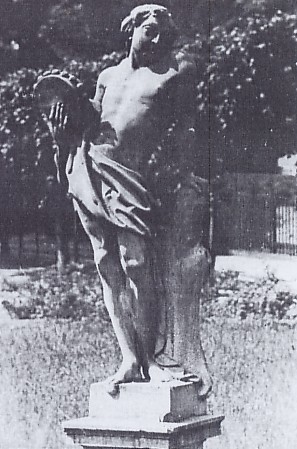 ![]() Fragment założeń ogrodowych - rzeźba z tamburynem.