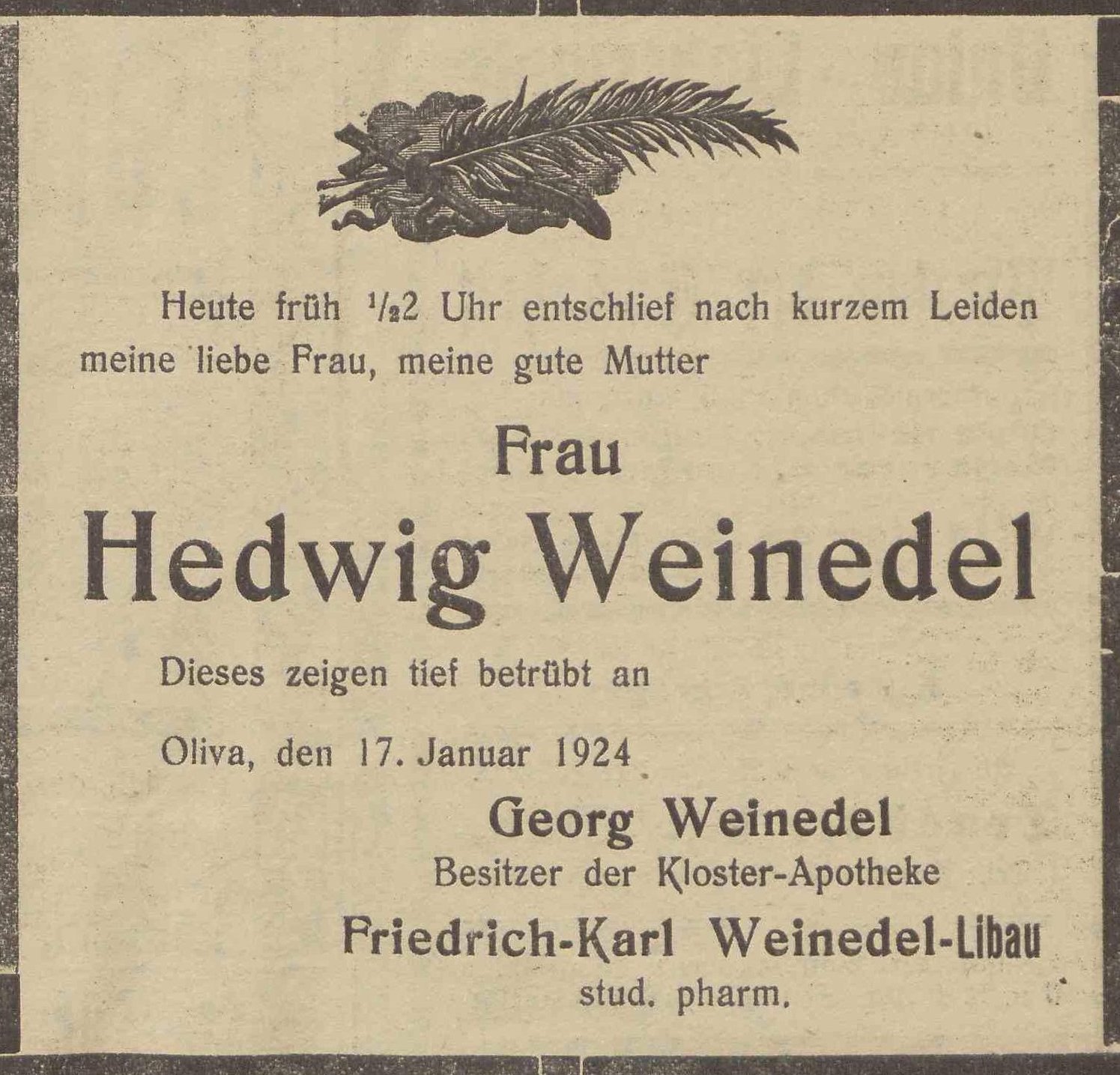 W tym czasie w Oliwie żyła duża grupa Polaków z Poznańskiego, ziemi chełmińskiej, Królestwa Polskiego i innych części kraju. Należeli do niej: ... Leon i Anna Smoleniowie, Franciszek ...