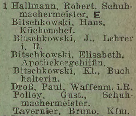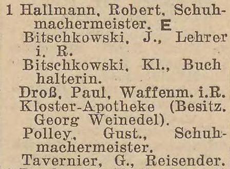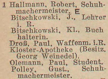 Polley, Gustav, mistrz szewski (Schuhmachermstr.).