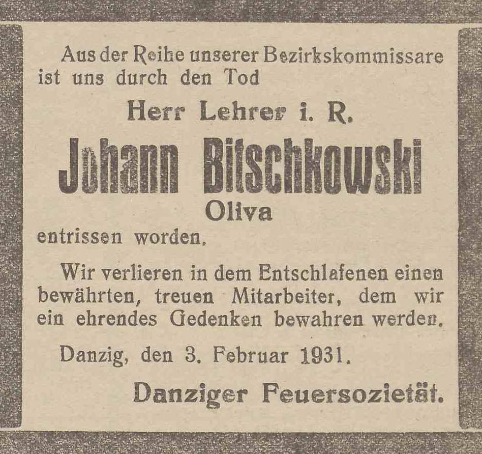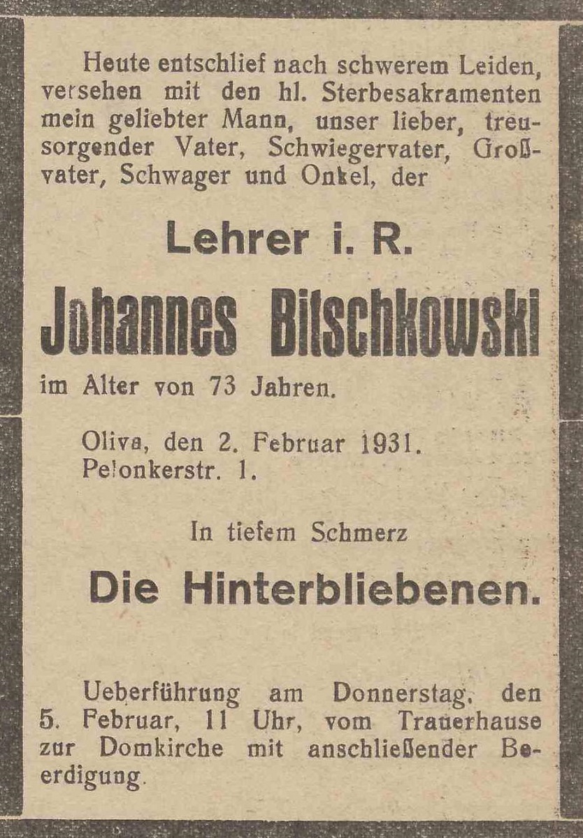 Bitschkowski, Johann, nauczyciel (Lehrer).