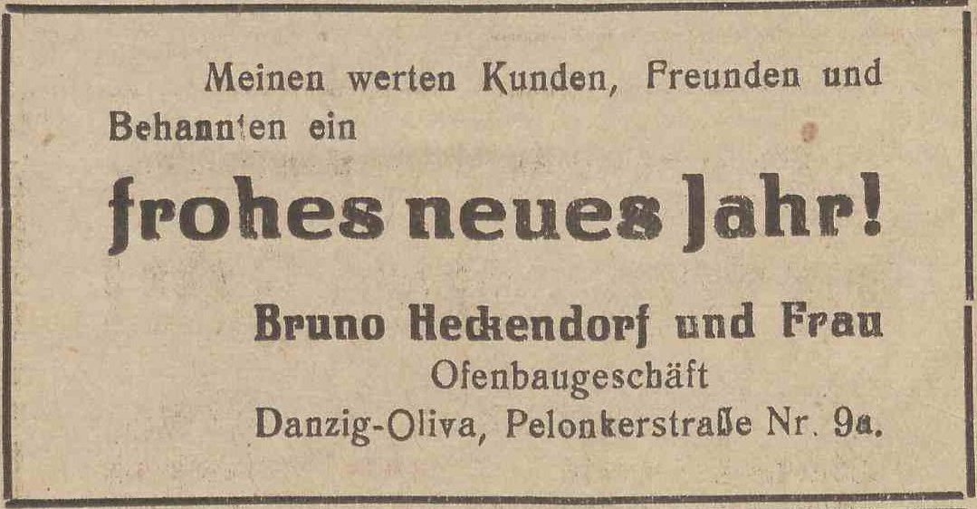 Bruno Heckendorf. Podziękowania noworoczne, Olivaer Zeitung nr 305 z 31. 12. 1931.