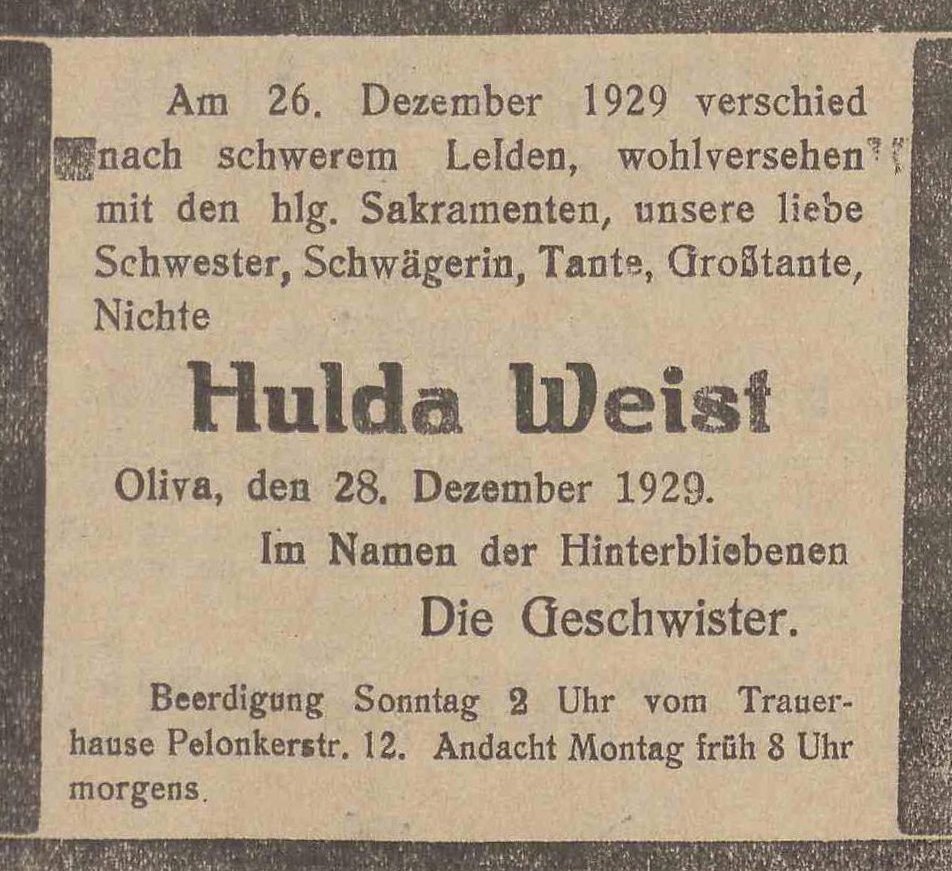 Hulda Weist. Olivaer Zeintung nr 303 z 28. 12. 1929 r.