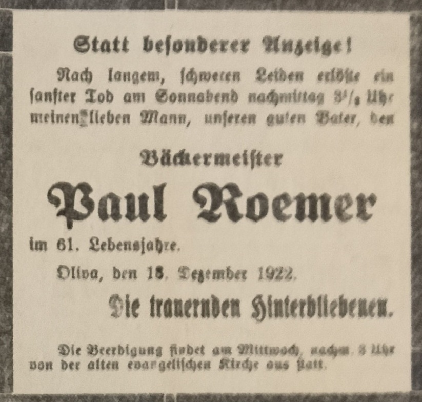 Paul Roemer. Danziger Kreis-Zeitung 1922. Przekaza³a Gra¿yna Niemyjska.