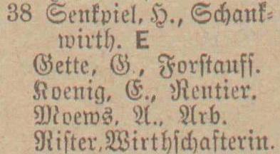 Bohl, Emil, Schankipirth. Gast, Johann, Arb. Gast, Valentin, Arb. Kober, Laura, geb. Krüger, Eigenth. Proch, Wilhelm, Arb. Richert, Albert, Arb.