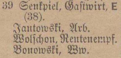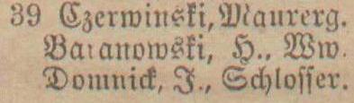 Baranowski, Helene, geb. Domnick, Wittwe. Domnick, Helene, Wittwe. Serotzki, Franz, Arbeiter.