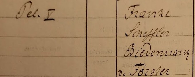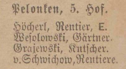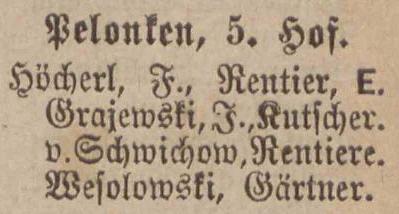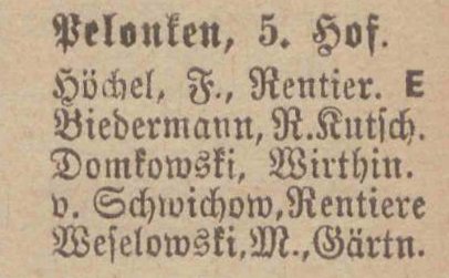 Pelonken V hof: (Rudolf) Franke, Scheffler, Biedermann, ... . Spis z 1895 roku. Przekazała Grażyna Niemyjska.
