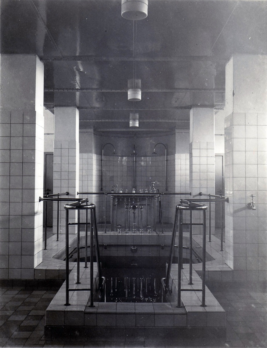 w chwili obecnej zostaje ujednolicony w swej formie i kolorze. Ściany w jasnych pastelowych kolorach, wysokie przestronne pokoje - biblioteki, jadalnie, pokoje gościnne i sypialnie. Na parterze dwa pokoje połączone w wielką jadalnię dla 70 osób, do której przylega druga mniejsza jadalnia dla dietetyków oraz skrzydło, w którym jest kuchnia wraz z piwnicą. Jednak rzeczywisty dom zdrojowy wybudowany w 1930 roku, widoczny w całej swej okazałości z ulicy, zaprojektowany przez architekta
