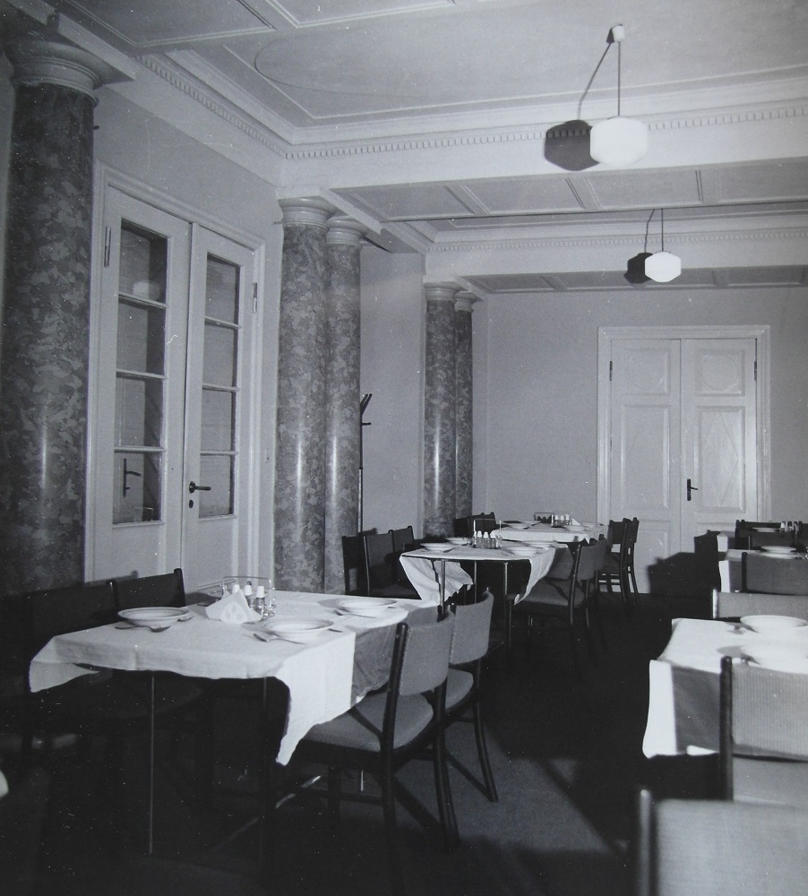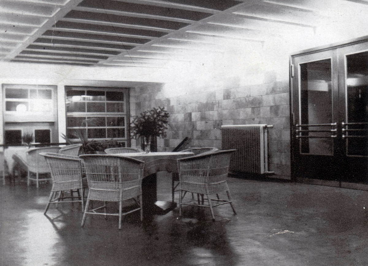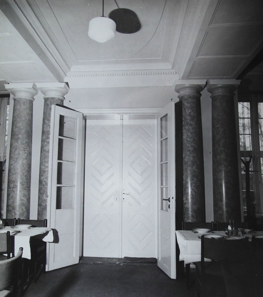 Kantyna na parterze w budynku północnym Dworu V należącego do Szpitala Marynarki Wojennej. Na wprost drzwi prowadzące do budynku południowego. Fot. Artur Wołosewicz 1977. Przekazał Robert Krygier.
