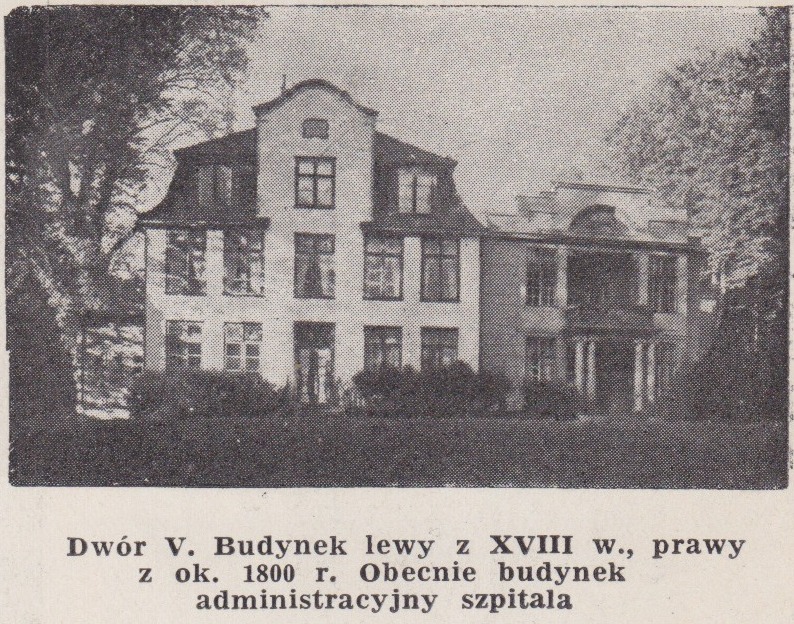 Po prawej zachodnio-południowa fasada budynku Dworu V należącego do Szpitala MW. Fot. Artur Wołosewicz 1977. Przekazał Robert Krygier.