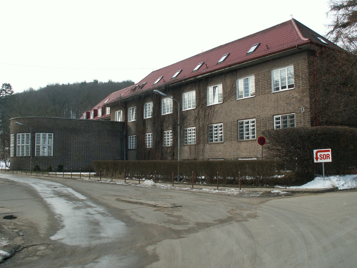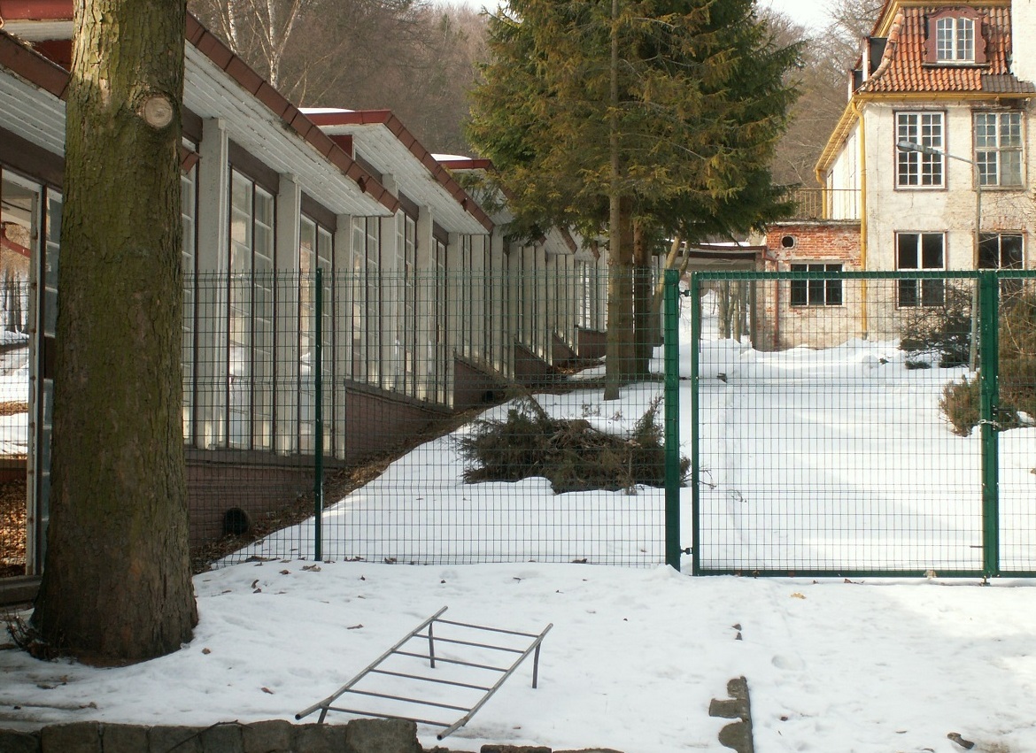 Skrzydło zachodnie dobudowane do budynku klasycystycznego w 1931 roku, parterowe o prostej, kubicznej bryle, przykryte stropodachem pełniącym funkcję tarasu. Stolarka okienna jak w budynku głównym, okna okratowane.