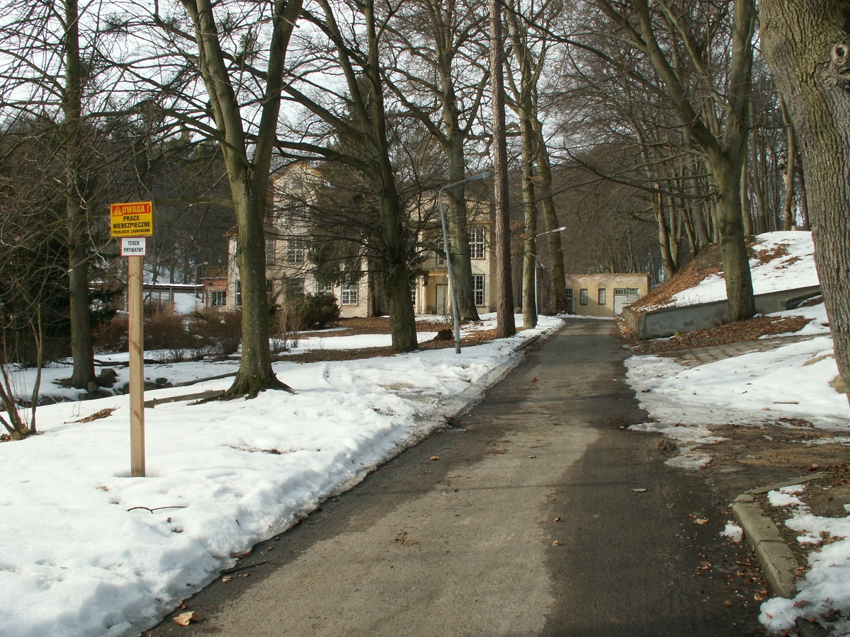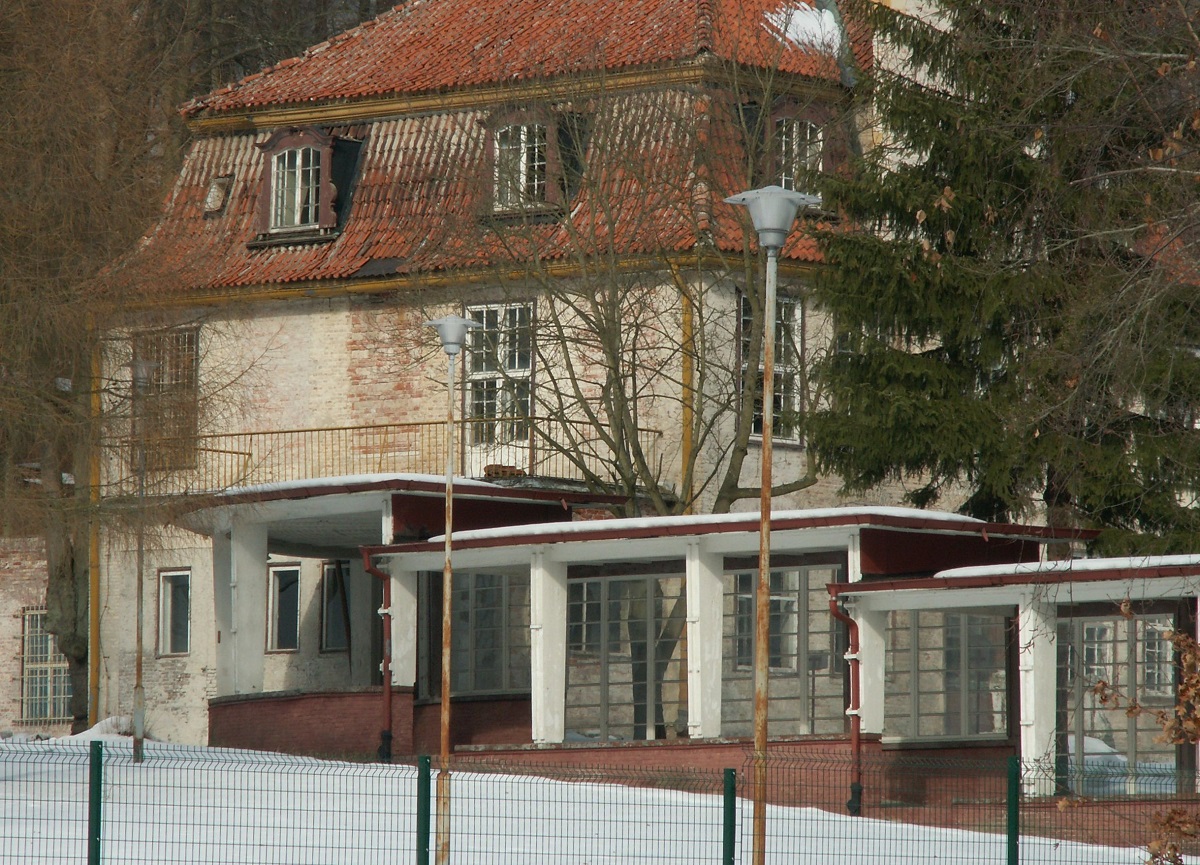 Sanatorium. Widok w kierunku dworu. Lata 40 XX wieku. Zbiory Piotra Leżyńskiego.