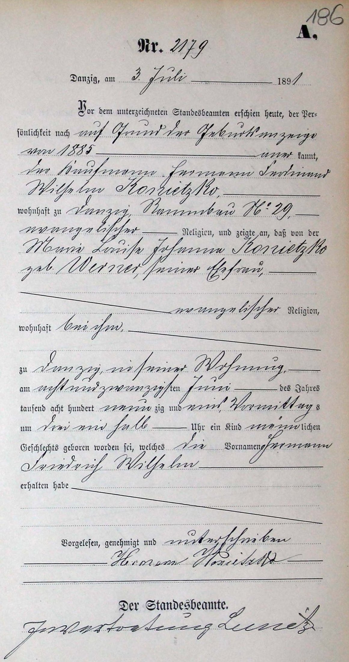 Aderssbuch Danzig, 1890. Hermann Konietzko, Rammbau 29: