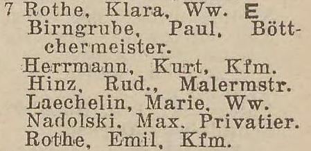 Klara Rothe. Książka adresowa z 1931 roku. Zbiory Pomorskiej Biblioteki Cyfrowej.