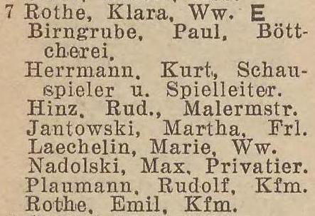 Klara Rothe. Książka adresowa z 1933 roku. Zbiory Pomorskiej Biblioteki Cyfrowej.