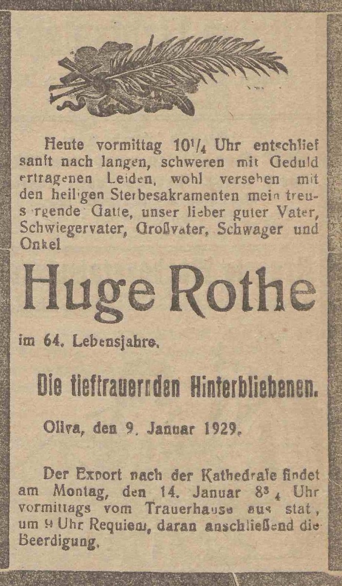 Hugo Rothe. Olivaer Zeintung nr 9 z 11. 01. 1929 r.