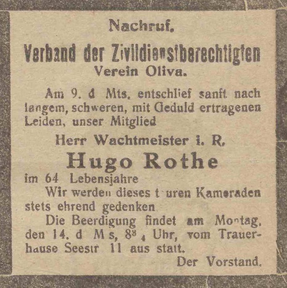Rothe. Książka adresowa gminy Oliwa z 1914 roku. Zbiory Pomorskiej Biblioteki Cyfrowej.