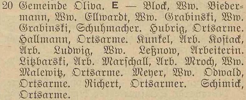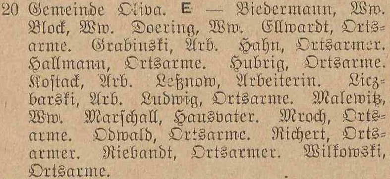 Z liczby mieszkańców można wnioskować, że był to dość spory budynek należący do gminy oliwskiej i następnie po włączeniu Oliwy w 1926 roku do Gdańska.