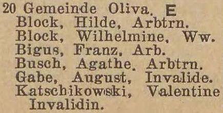 Gemeinde Oliva. Książka adresowa gminy Oliwa z 1916 roku. Zbiory Mirosława Piskorskiego.