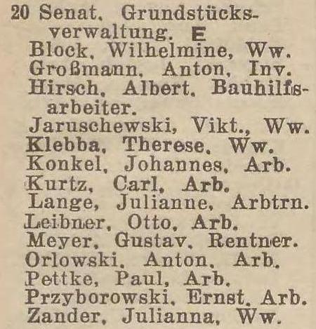 Adres: Seestraße 20. Anna Marta Pettke (ur. 10.1941, zm. 12.1941 - katar kiszek). Źródło: , 12.1941 poz. 115.