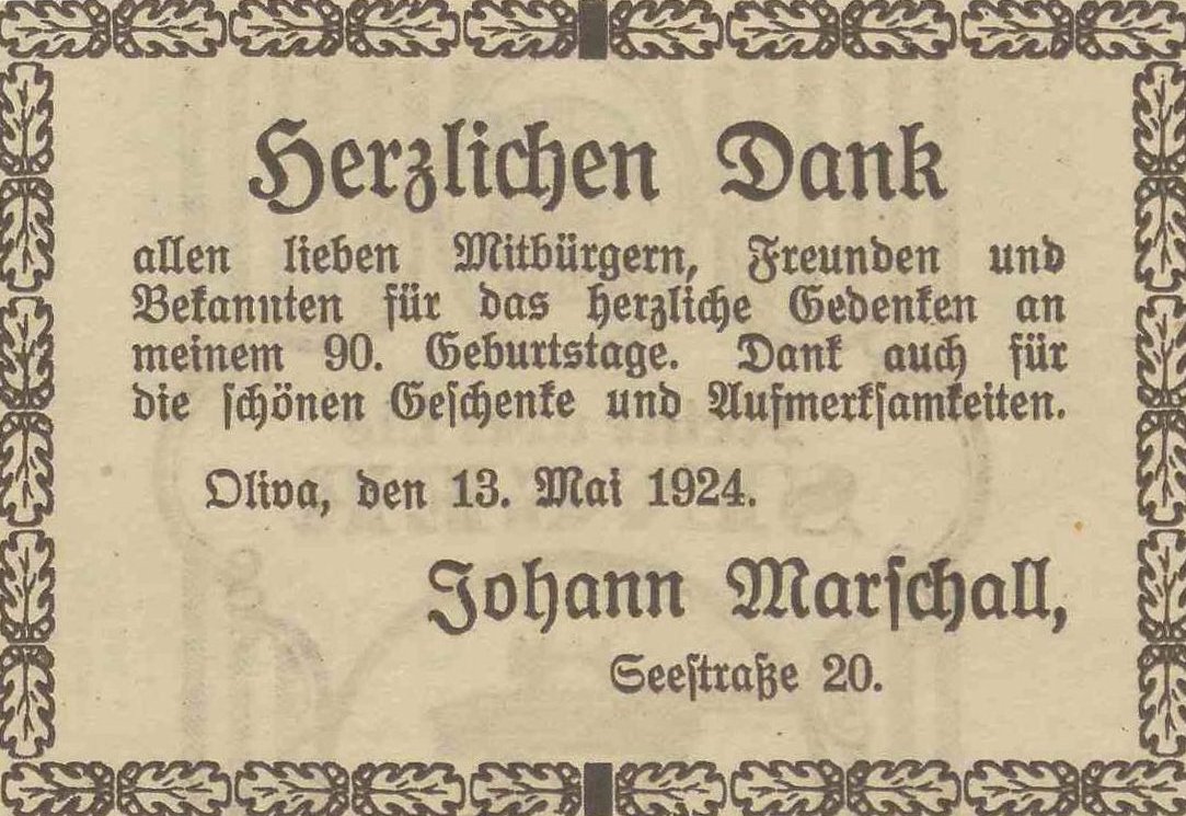 Johann Marschall. Olivaer Zeintung nr 112 z 14. 05. 1924 r.