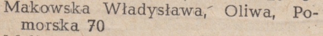 Adres: Pomorska 68. Maria Dziewicka (ur. 23.10.1947, zm. 12.11.1947 - zapalenie płuc). Źródło: , 11.1947 poz. 97.