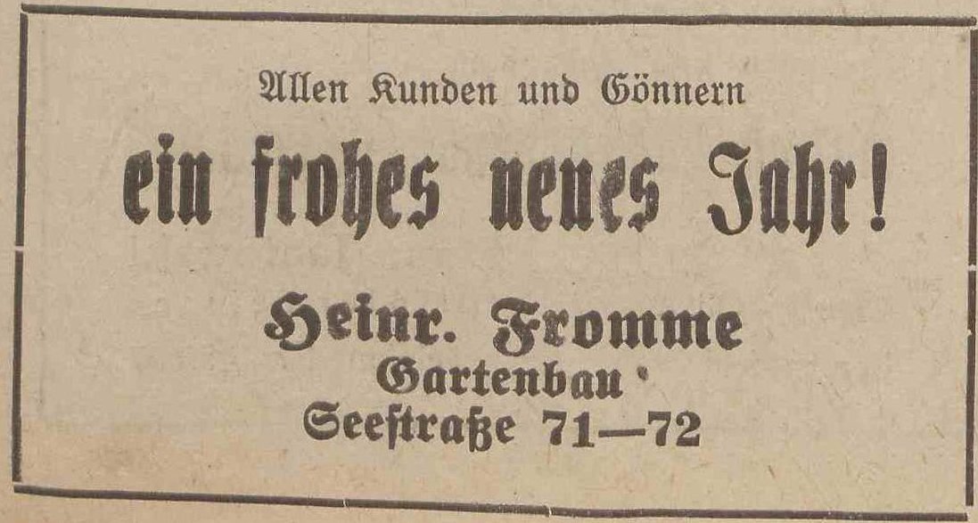 Heinr. Fromme. Podziękowania noworoczne, Olivaer Zeitung nr 305 z 31. 12. 1931.