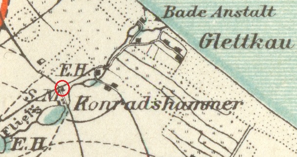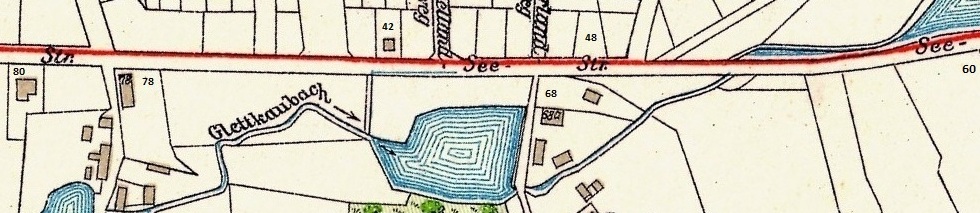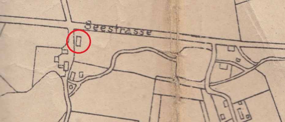 Lokalizacja budynku przy ul. Pomoreskiej 78 na planie wydanym w 1949 r. Ze strony maps.mapywig.org.