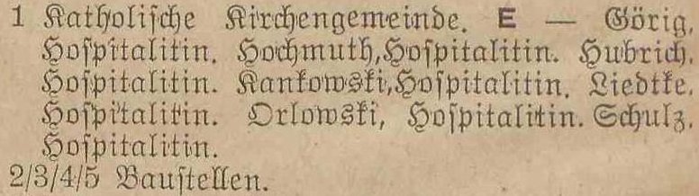 Katholische Hospital. Książka adresowa z 1910 roku. Zbiory Pomorskiej Biblioteki Cyfrowej.