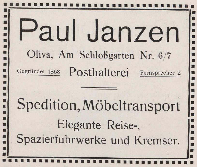 Janzen. Książka adresowa Sopot-Oliwa z 1902 roku. Zbiory Pomorskiej Biblioteki Cyfrowej.