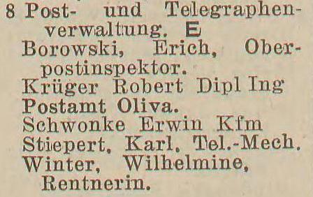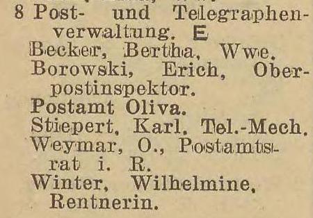 H. Haupt. Postamt Oliva. Książka adresowa z 1926 roku. Zbiory Pomorskiej Biblioteki Cyfrowej.