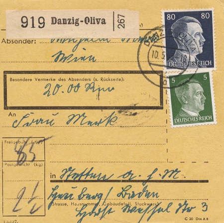Podczas wyzwalania Oliwy w końcu marca 1945 roku budynek został spalony. Gdy w maju 1945 roku do Oliwy przywieziono z Gdyni centralę telefoniczną na 50 numerów zainstalowano ją w budynku dawnej poczty przy ul. Grunwaldzkiej (pewnie istniała jeszcze infrastruktura pomiędzy budynkami).