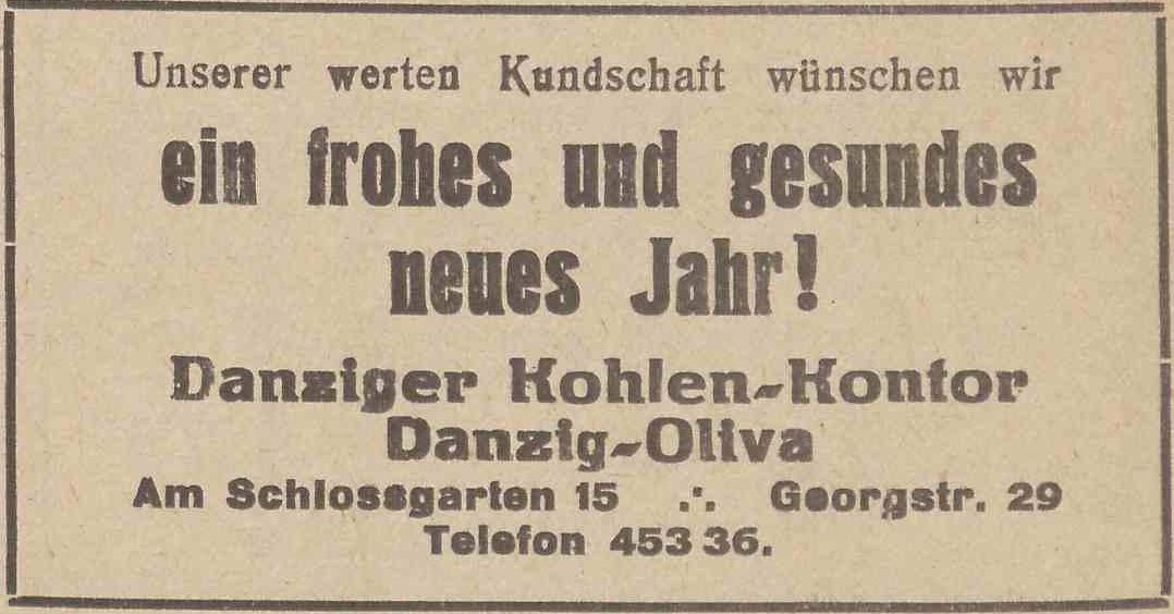 Danziger Kohlen-Kantor. Podziękowania noworoczne, Olivaer Zeitung nr 305 z 31. 12. 1931.