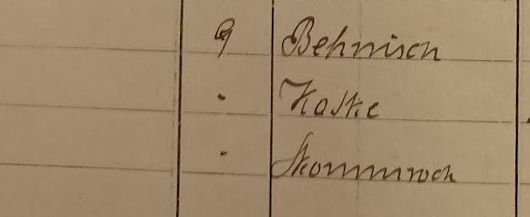 Köllner Chaussee 9: Behnisch?, Katke, Skomroch. Spis z 1895 roku. Przekazała Grażyna Niemyjska.