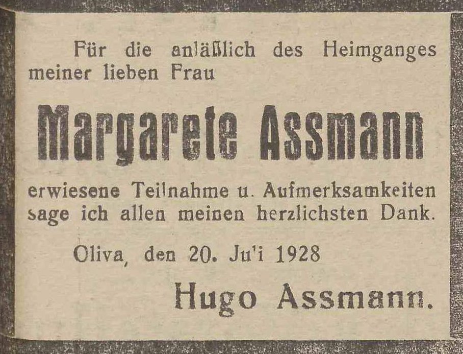 Aßmann. Kupiec. Książka adresowa gminy Oliwa z 1914 roku. Zbiory Pomorskiej Biblioteki Cyfrowej.
