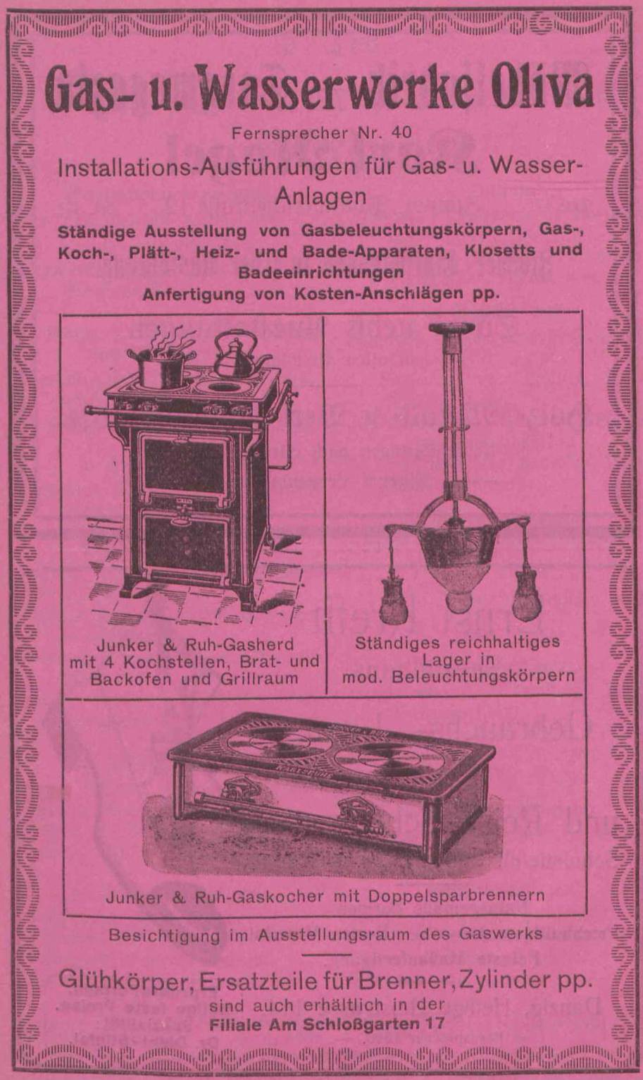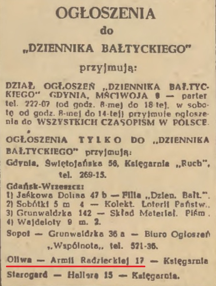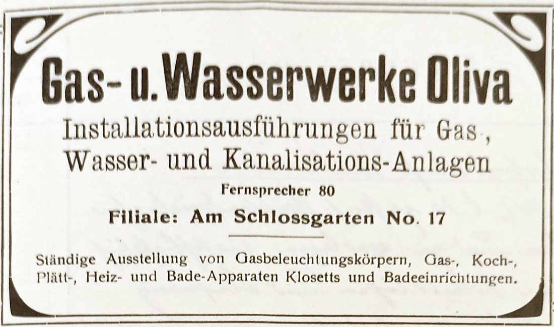 Reklama. Książka adresowa gminy Oliwa z 1920-1921 r. Zbiory Pomorskiej Biblioteki Cyfrowej.