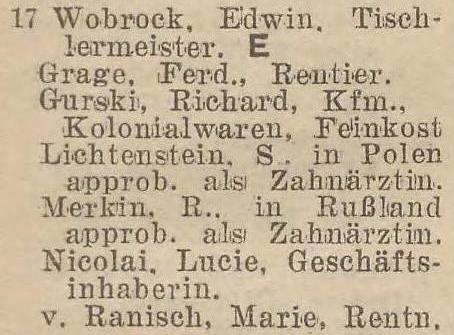 W 1901 roku letników przymował Ranisch (Karl), Köllner Chaussee 15, (Olivaer Nachrichten, ).