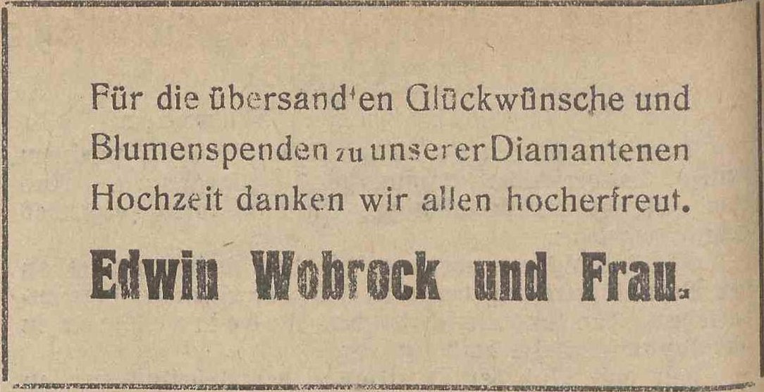 Edwin Wobrock. 60. rocznica. Olivaer Zeintung nr 258 z 02. 11. 1929 r.