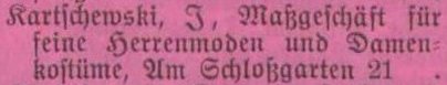 J. Kartschewski. Reklama z 1916 roku. Zbiory Pomorskiej Biblioteki Cyfrowej.