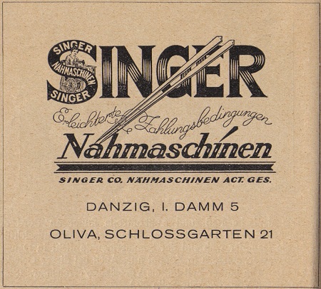"SINGER". Nahmaschinen. Reklama z 1925 roku. Zbiory TPG Strefa Historyczna WMG.
