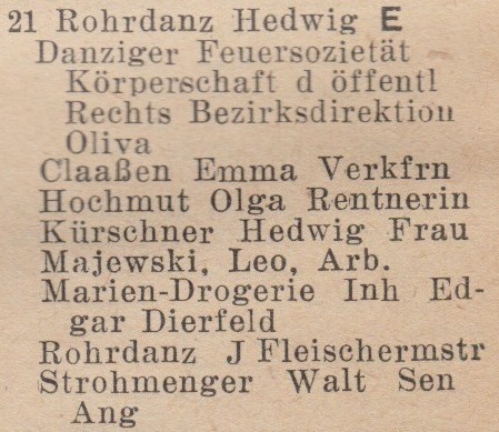 Hedwig Rohrdanz. Książka adresowa z 1937-1938 roku. Zbiory Piotra Mazurka.