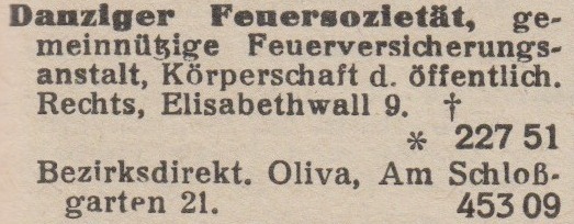 John Rohrdanz. Edgar Dierfeld. Danziger Feuersozietät. Książka telefoniczna z 1937 r. Zbiory TPG Strefa Historyczna WMG.