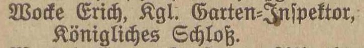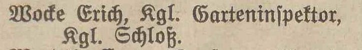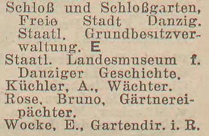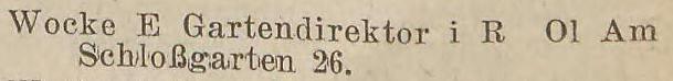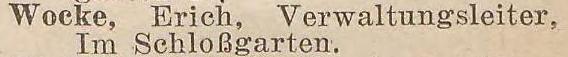 Erich Wocke. Am Schloßgarten. Książka adresowa z 1929 roku. Zbiory Pomorskiej Biblioteki Cyfrowej.