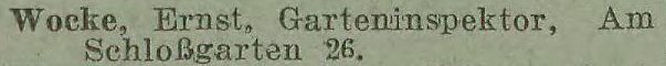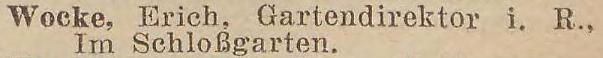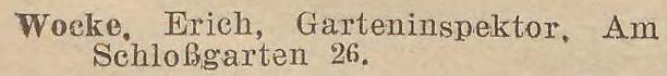Erich Wocke. Am Schloßgarten. Książka adresowa z 1928 roku. Zbiory Pomorskiej Biblioteki Cyfrowej.